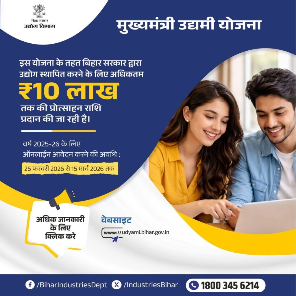 मुख्यमंत्री उद्यमी योजना 2025-26: ₹10 लाख तक अनुदान, 25 फरवरी से आवेदन शुरू – पूरी जानकारी, पात्रता, फॉर्म भरने की