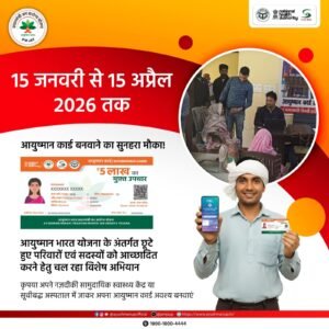 15 जनवरी से 15 अप्रैल तक चल रहा आयुष्मान कार्ड विशेष अभियान उन लोगों के लिए एक बड़ा अवसर है, जो अब तक इस योजना से नहीं जुड़ पाए थे। आयुष्मान कार्ड न सिर्फ इलाज की सुविधा देता है, बल्कि गरीब परिवारों को आर्थिक संकट से भी बचाता है।