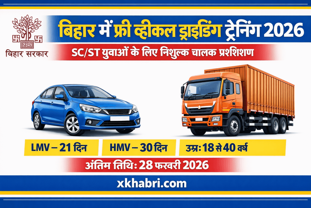 बिहार में फ्री व्हीकल ड्राइविंग ट्रेनिंग 2026 – SC/ST युवाओं के लिए सुनहरा अवसर बिहार के युवाओं के लिए वर्ष